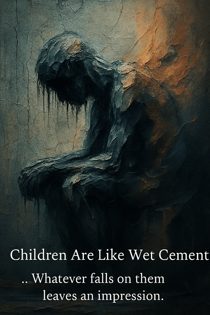Every word. Every touch. Every absence. Some crush. Some carve. Some redeem. So be mindful of your hands, your words, your eyes. You are always shaping someone. And children… Children are like wet cement.